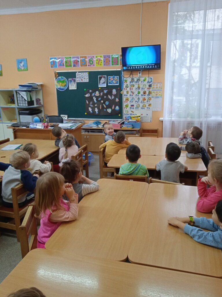 Занятие по коллективной аппликации в средней группе №9 "Ракеты и кометы"