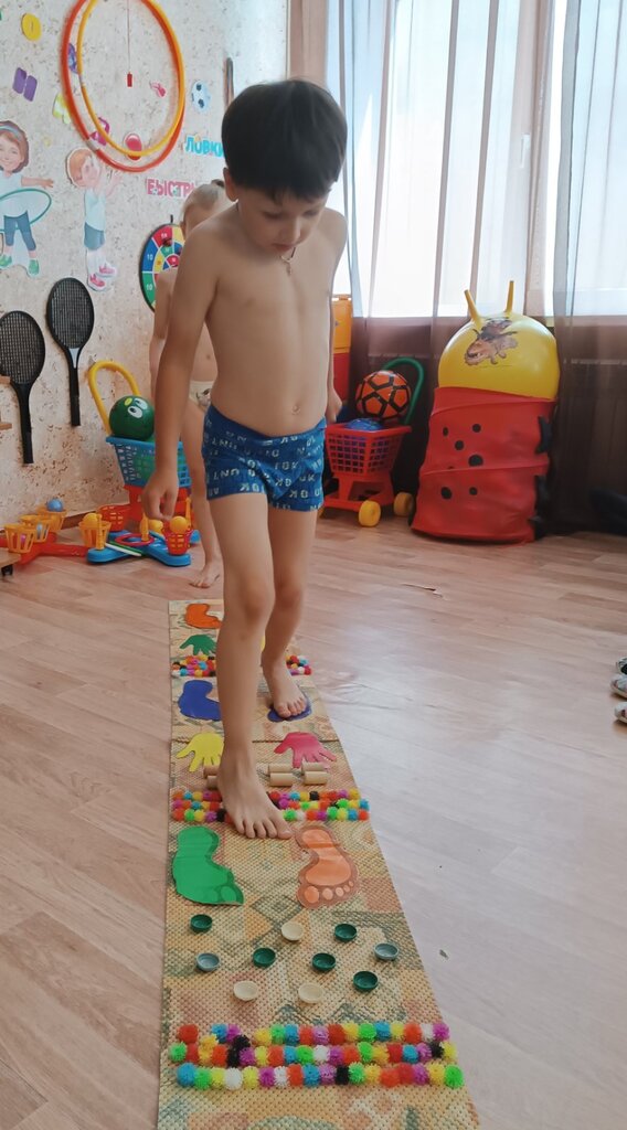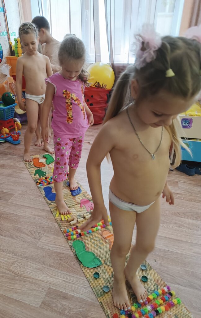 Хождение босиком по траве и массажным дорожкам