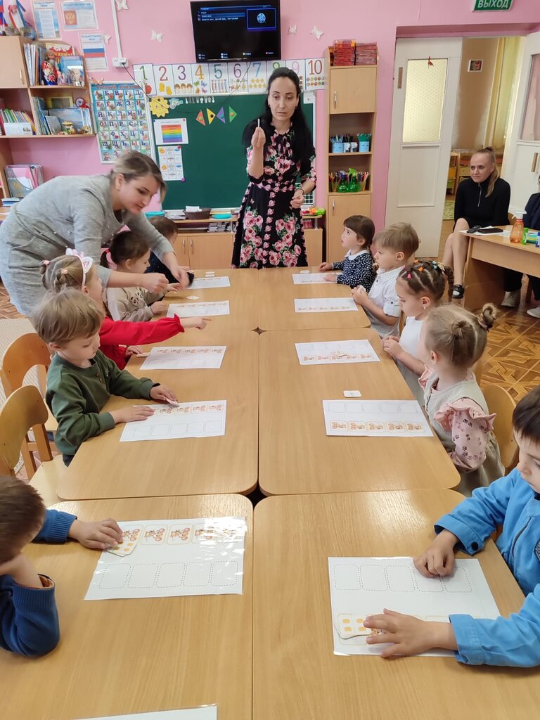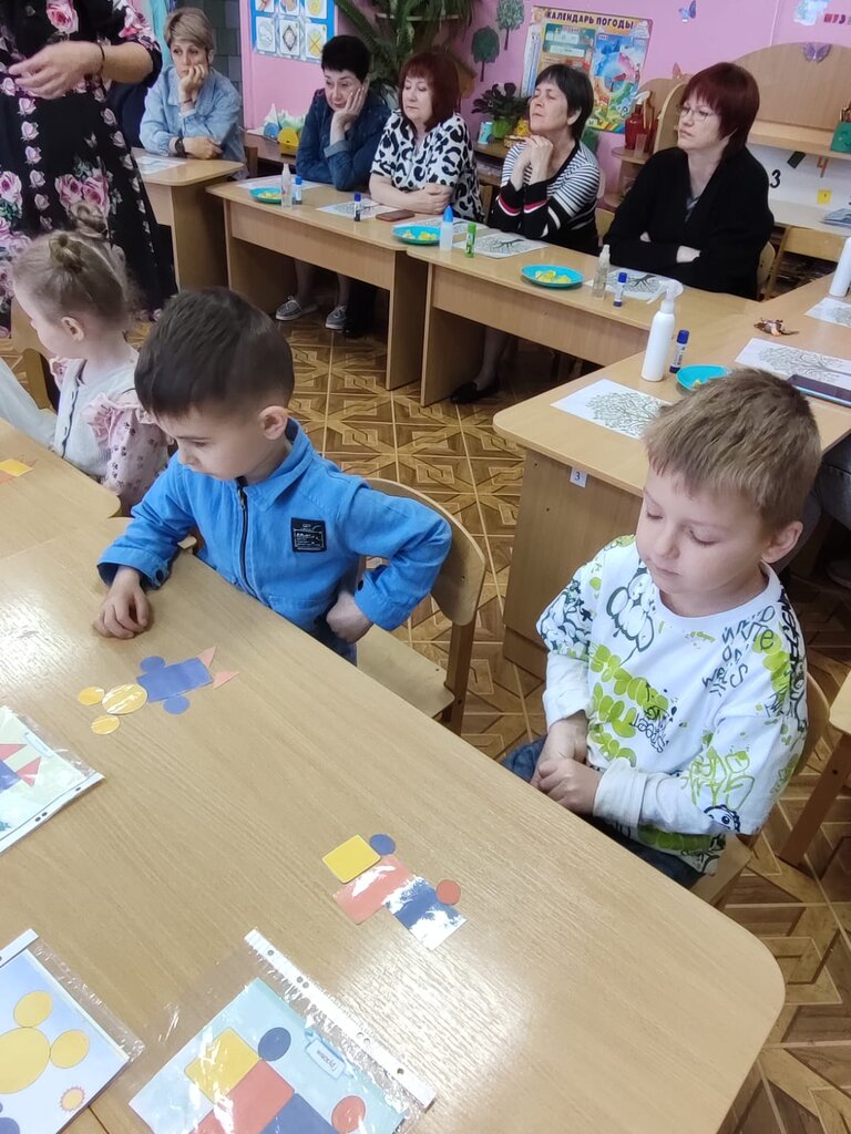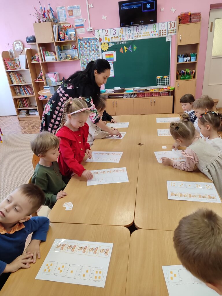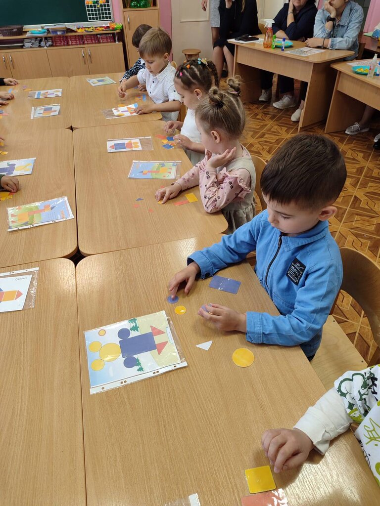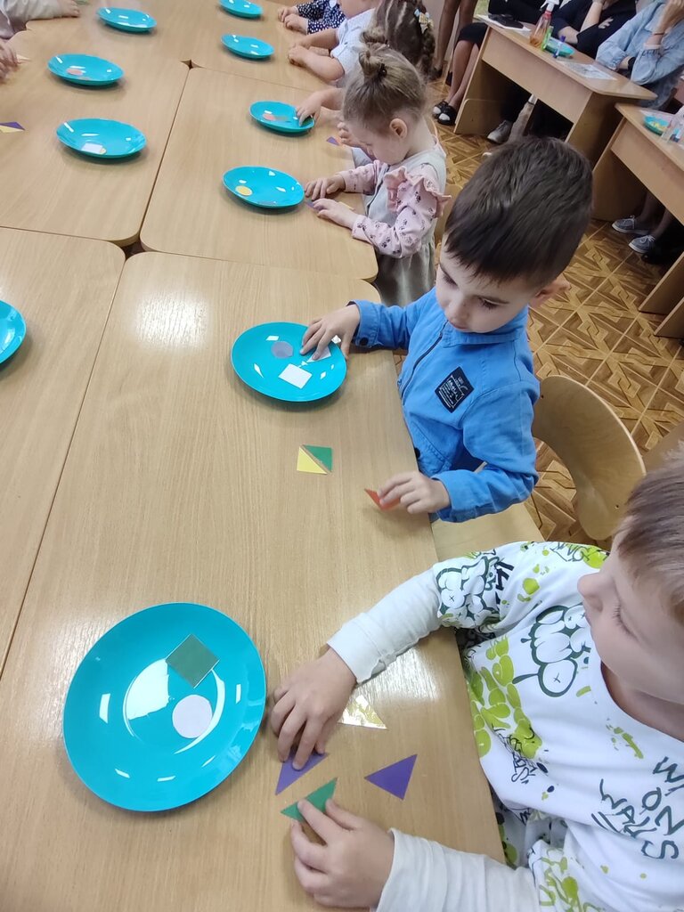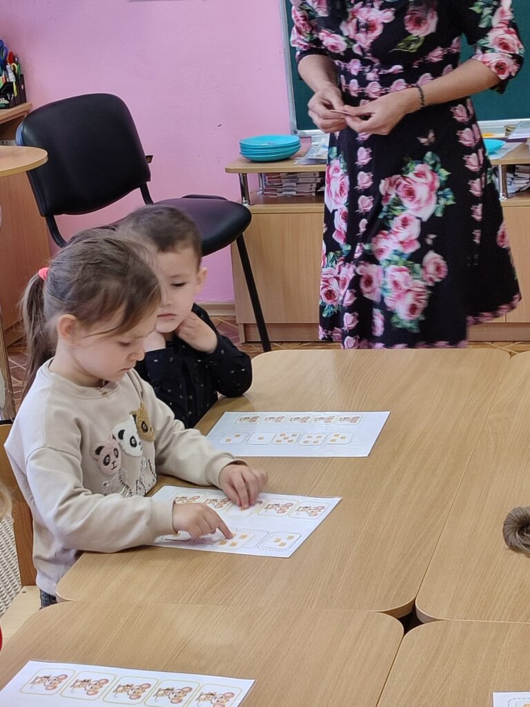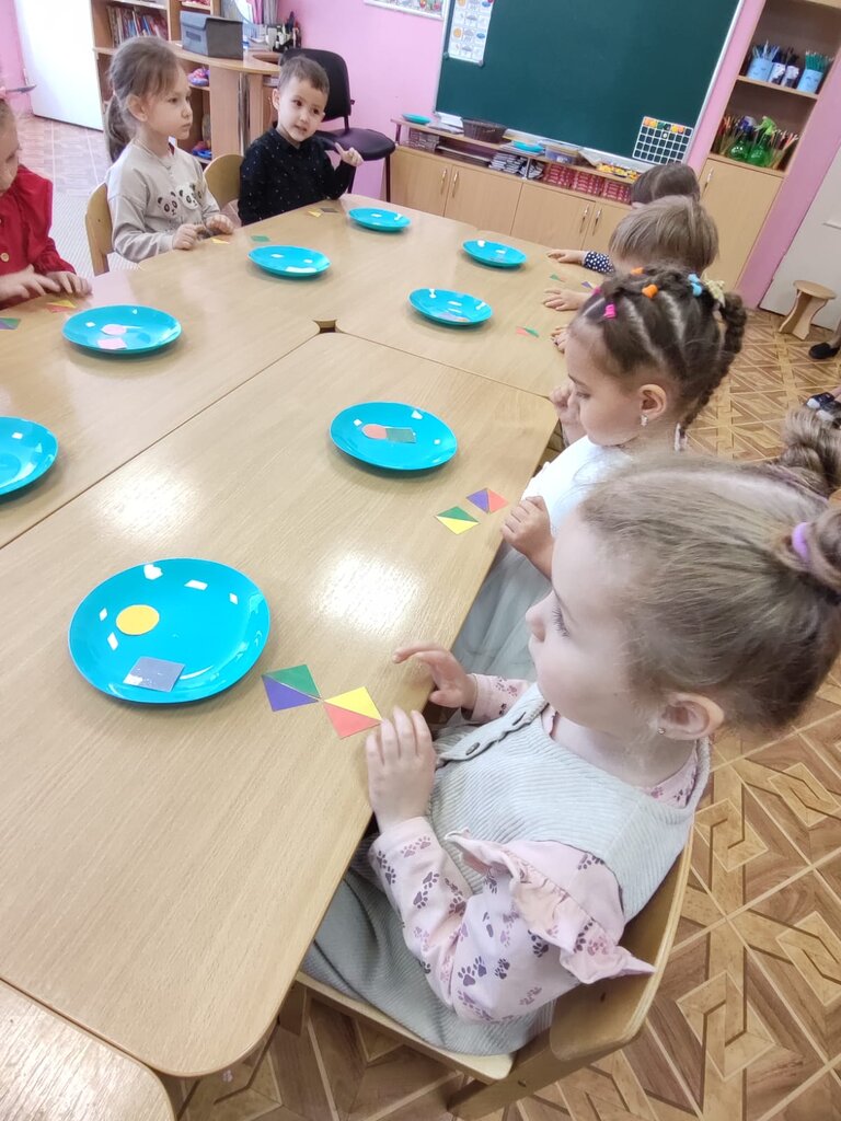 Цель: развивать ориентировку на листе бумаги, закрепить представление о геометрических фигурах, закрепить счёт от 1 до 5, учить различать геометрические фигуры используя зрительный анализ.