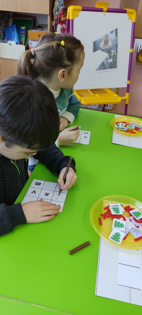 Упражнять в сравнении чисел, употреблении математических знаков.