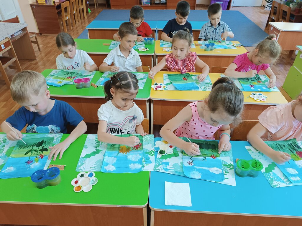 1. Формировать умение правильно держать кисть, промывать ее в воде, осушать о салфетку; развивать желание рисовать природу, способствовать развитию творческого воображения и фантазии.
