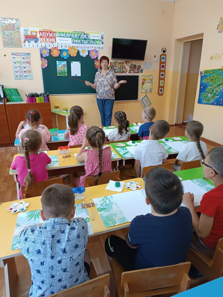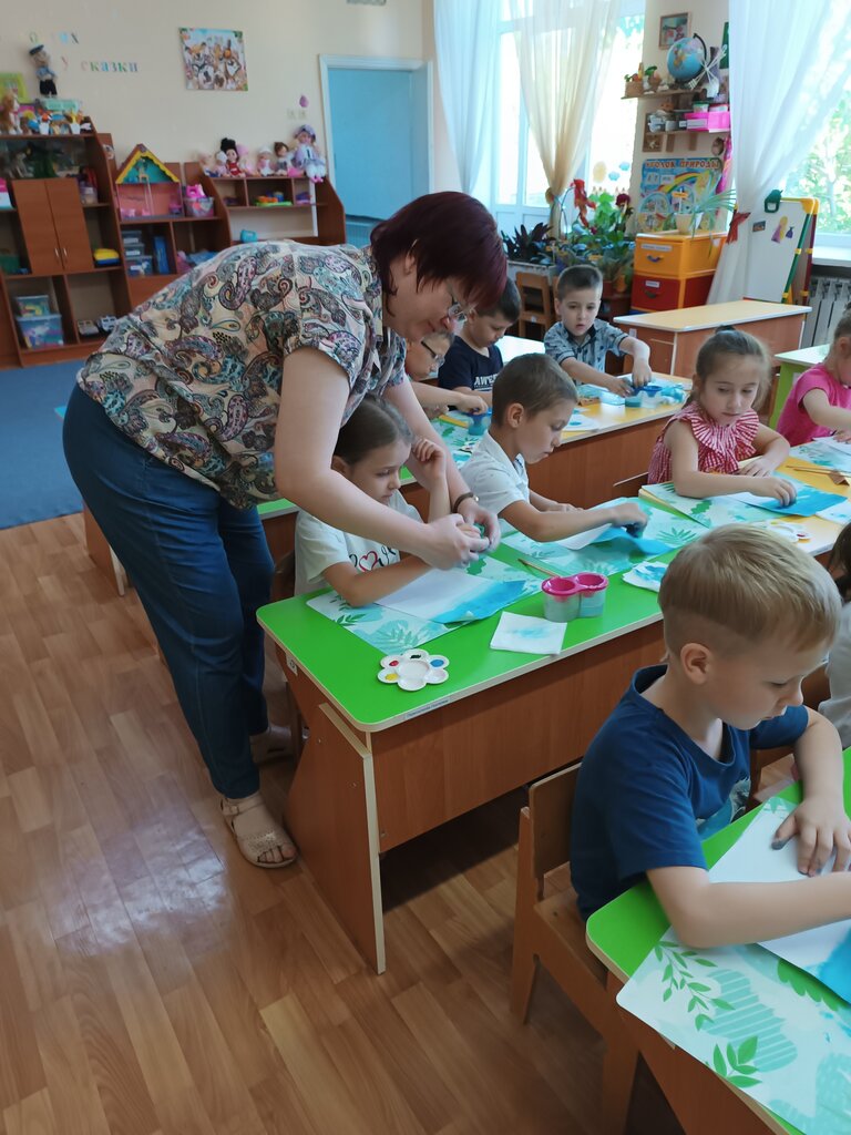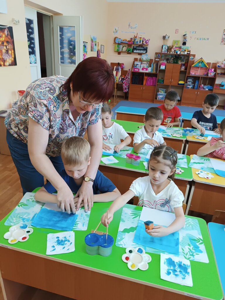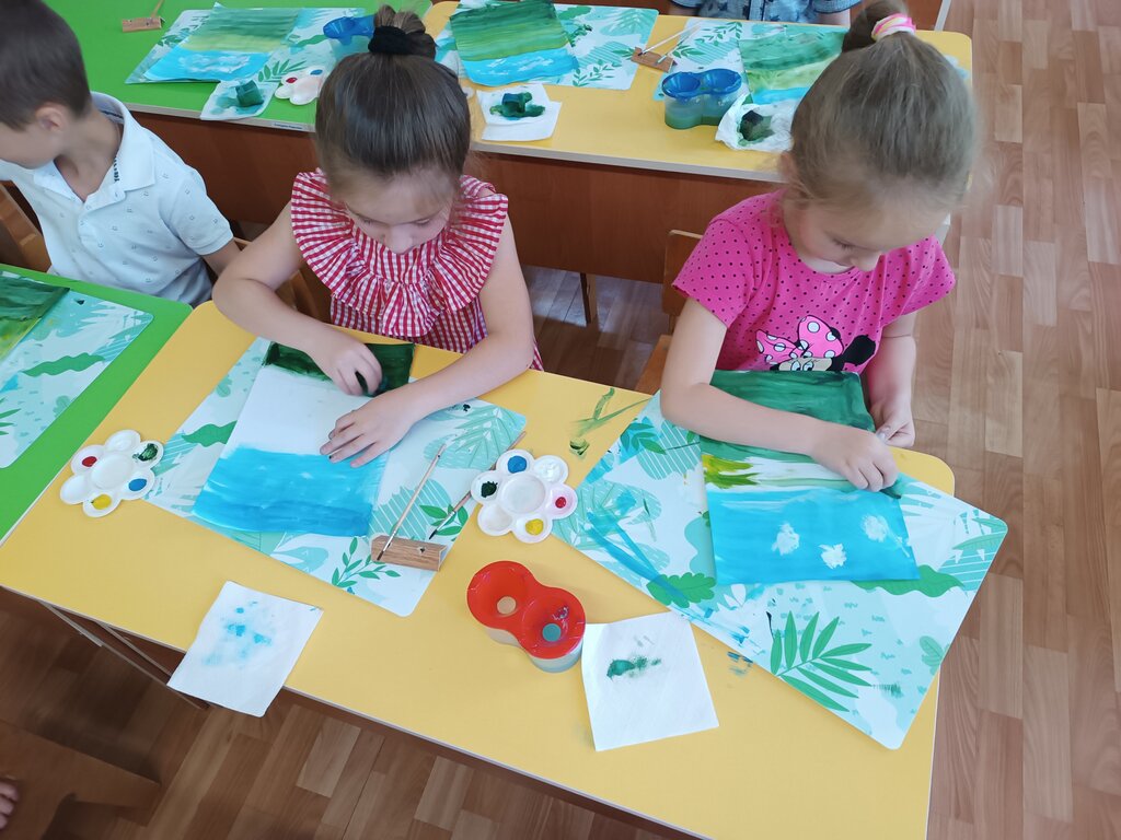 2. Гуашь, кисти, кусочек поролона, палитра, листы бумаги формата А4; салфетки, банки с водой.